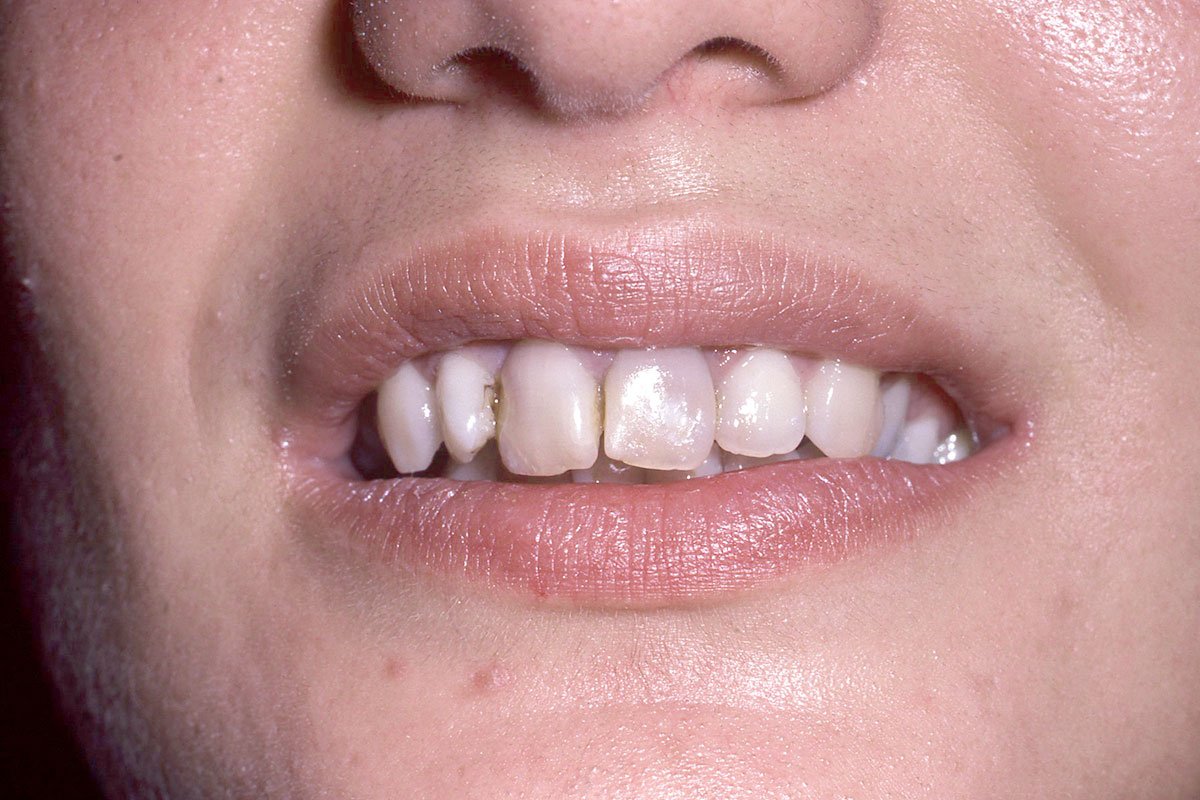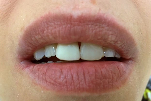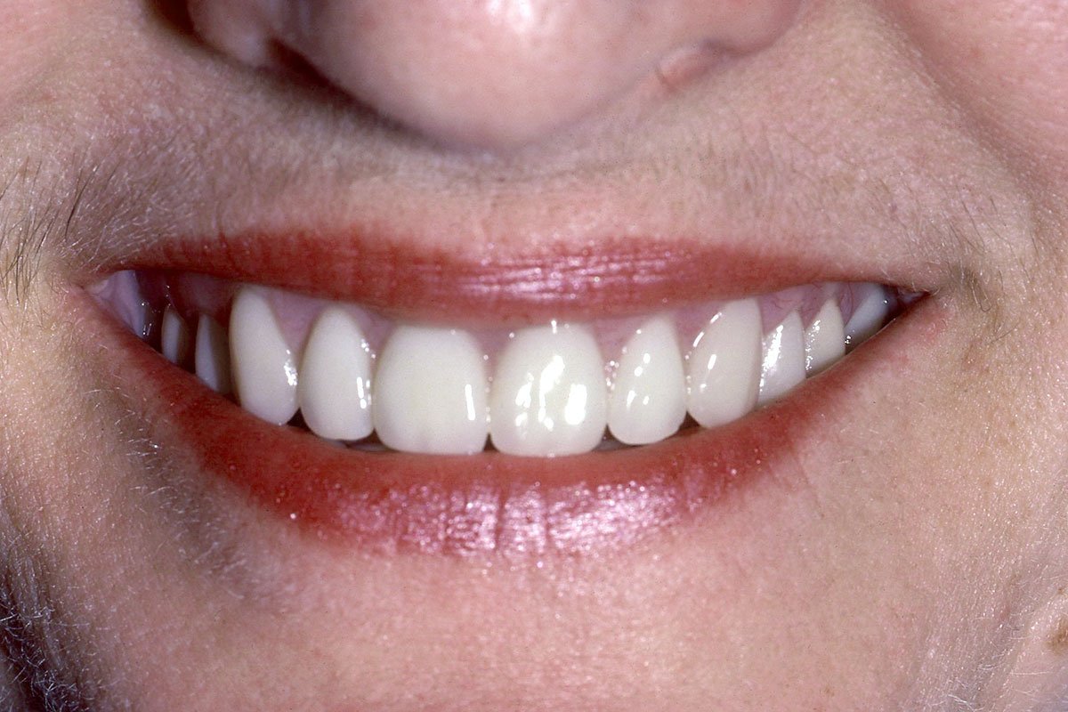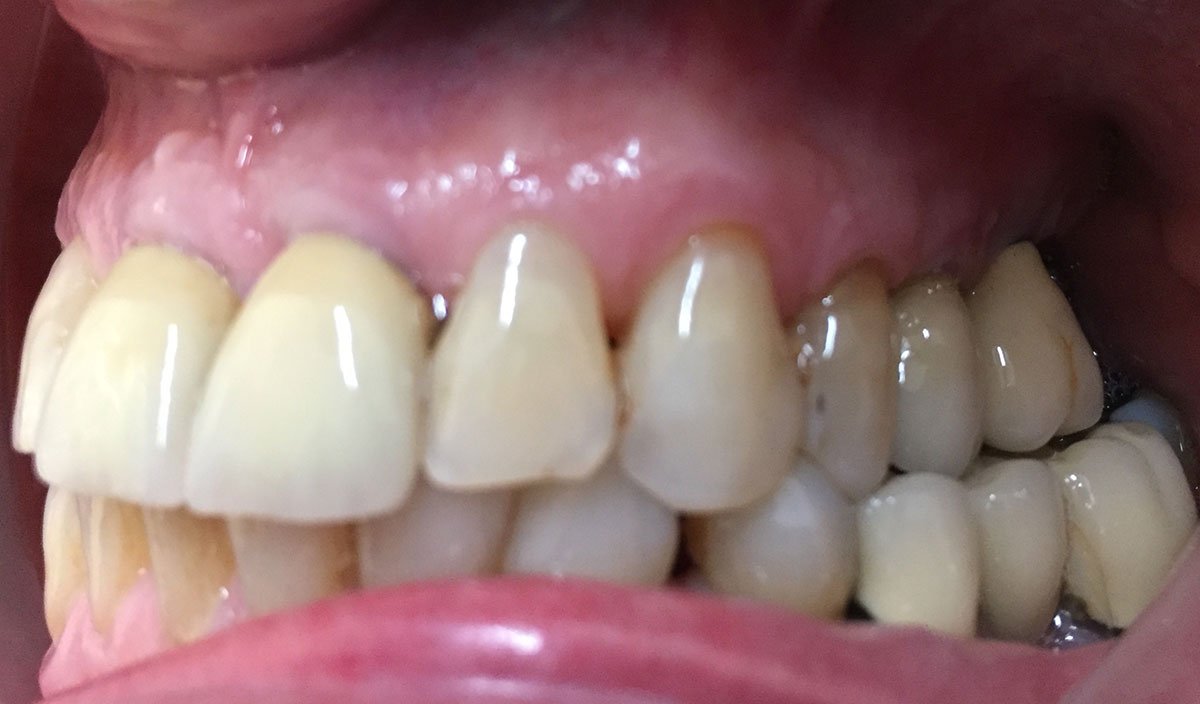 4. Γέφυρα πορσελάνης σε ζιρκόνιο στη άνω πρόσθια περιοχή μετά από εξαγωγή άνω αριστερού κεντρικού τομέα