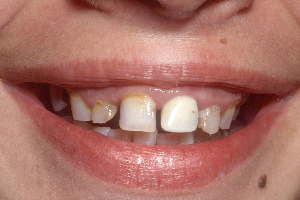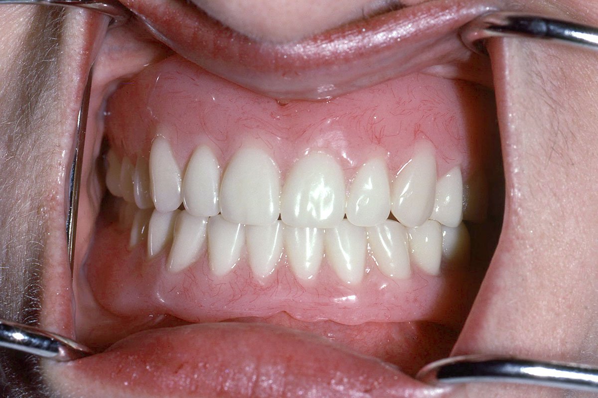 2. Μεταλλοκεραμικές στεφάνες στους δύο κεντρικούς τομείς άνω γνάθου