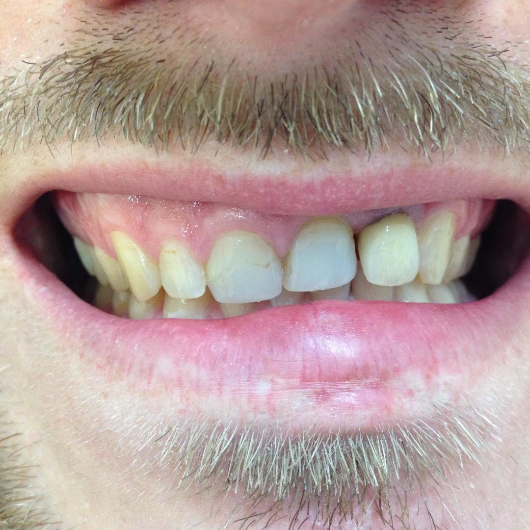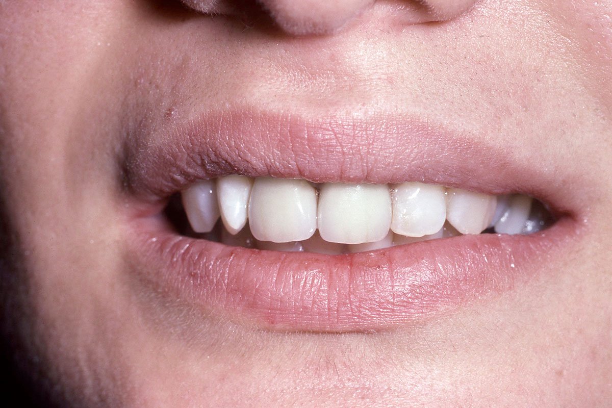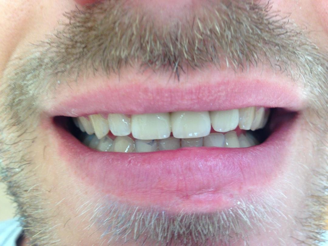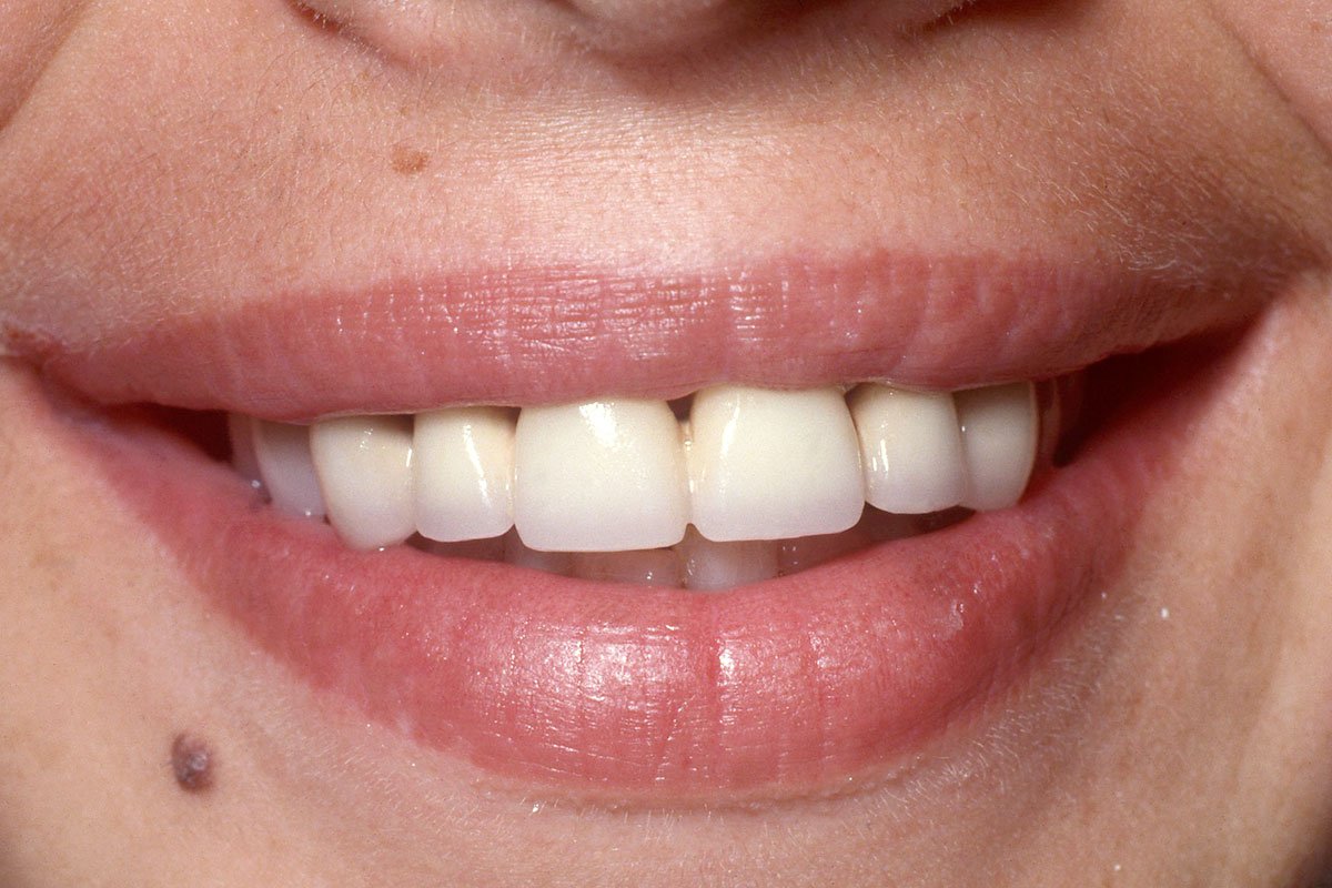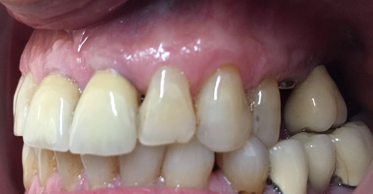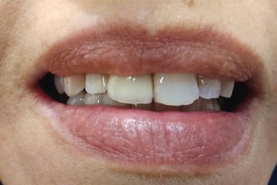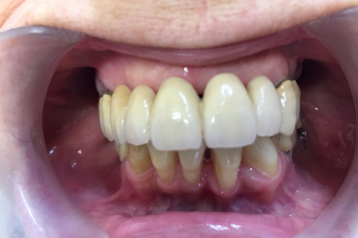 4. Γέφυρα πορσελάνης σε ζιρκόνιο στη άνω πρόσθια περιοχή μετά από εξαγωγή άνω αριστερού κεντρικού τομέα