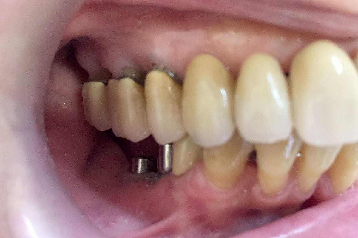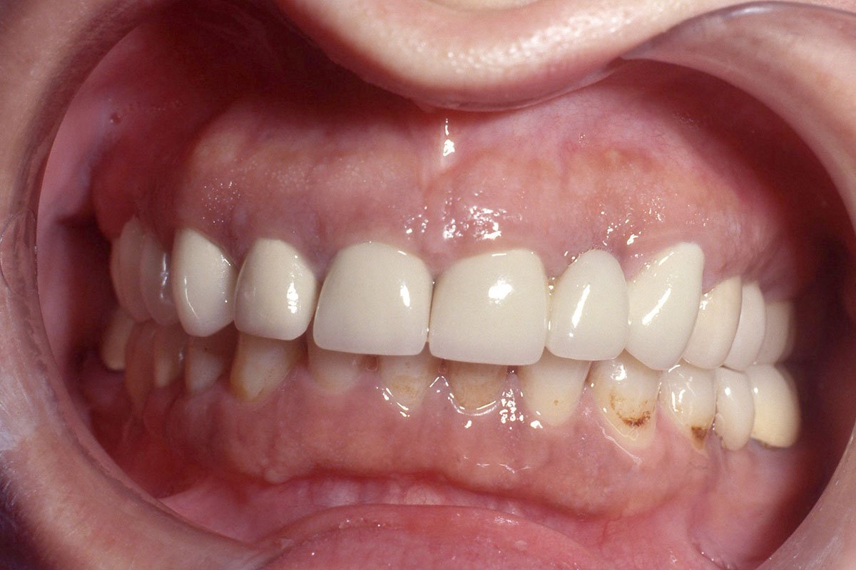 10. Στεφάνες πορσελάνης σε ζιρκόνιο επί δύο εμφυτευμάτων στην άνω οπίσθια περιοχή