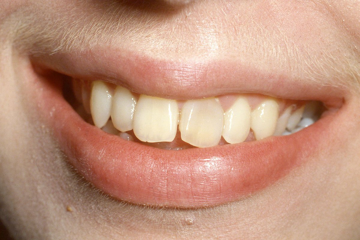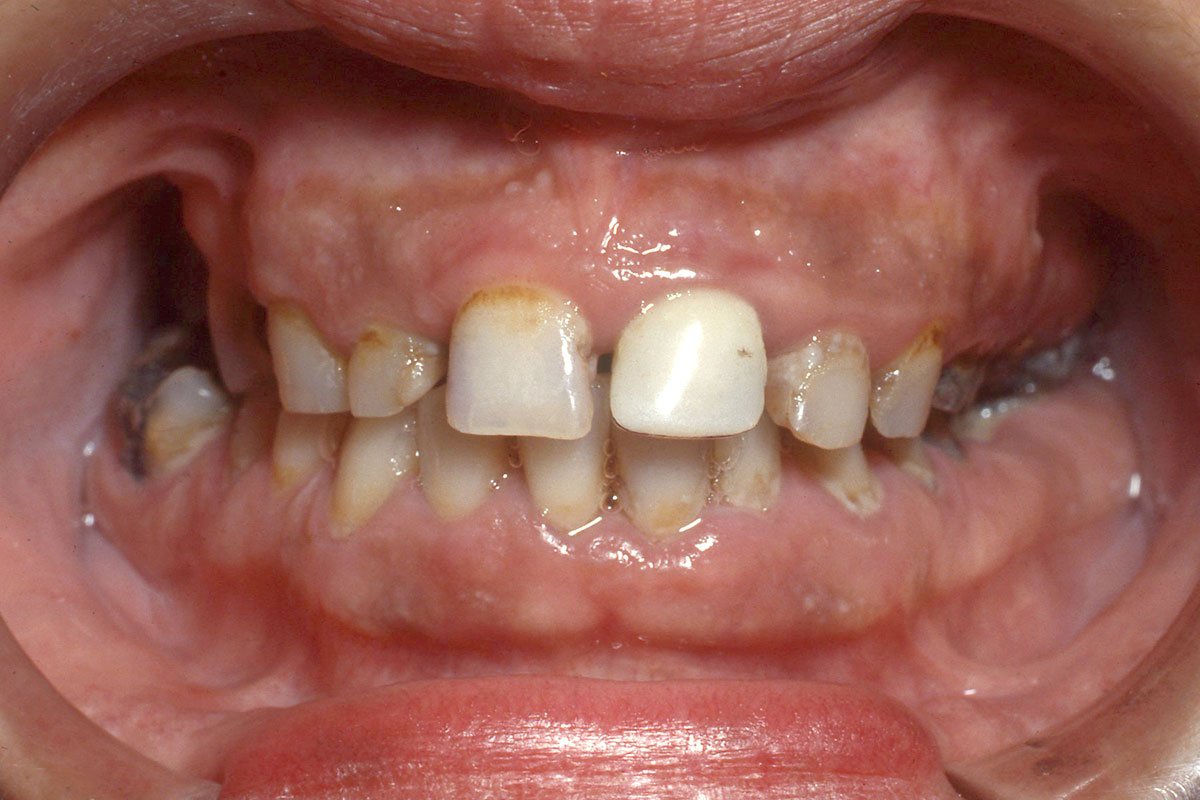 2. Μεταλλοκεραμικές στεφάνες στους δύο κεντρικούς τομείς άνω γνάθου