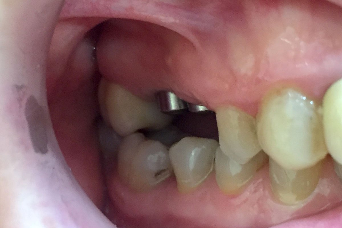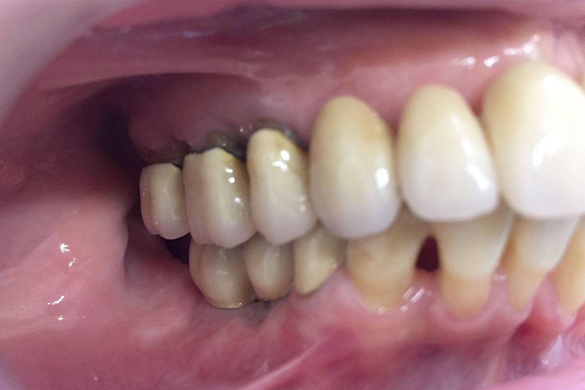 9. Στεφάνες πορσελάνης σε ζιρκόνιο επί δύο εμφυτευμάτων στην κάτω οπίσθια περιοχή